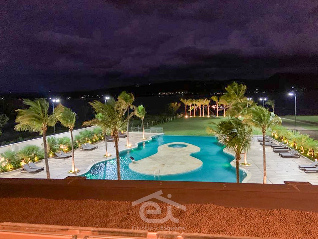 O condomínio conta com uma estrutura completa de lazer, incluindo restaurante/bar exclusivo para condôminos e convidados, academia, quadras de beach tennis e futevôlei, piscina infantil com parque aquático, piscina adulta com borda infinita, lounges de descanso, sauna e fácil acesso tanto pela água quanto por asfalto.