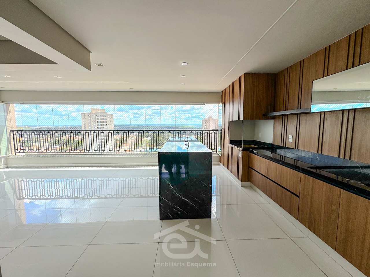 - Sala ampla para 03 ambientes, com cortina de vidro e totalmente integrada à área gourmet;