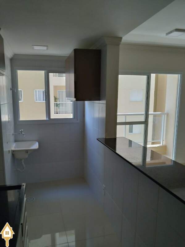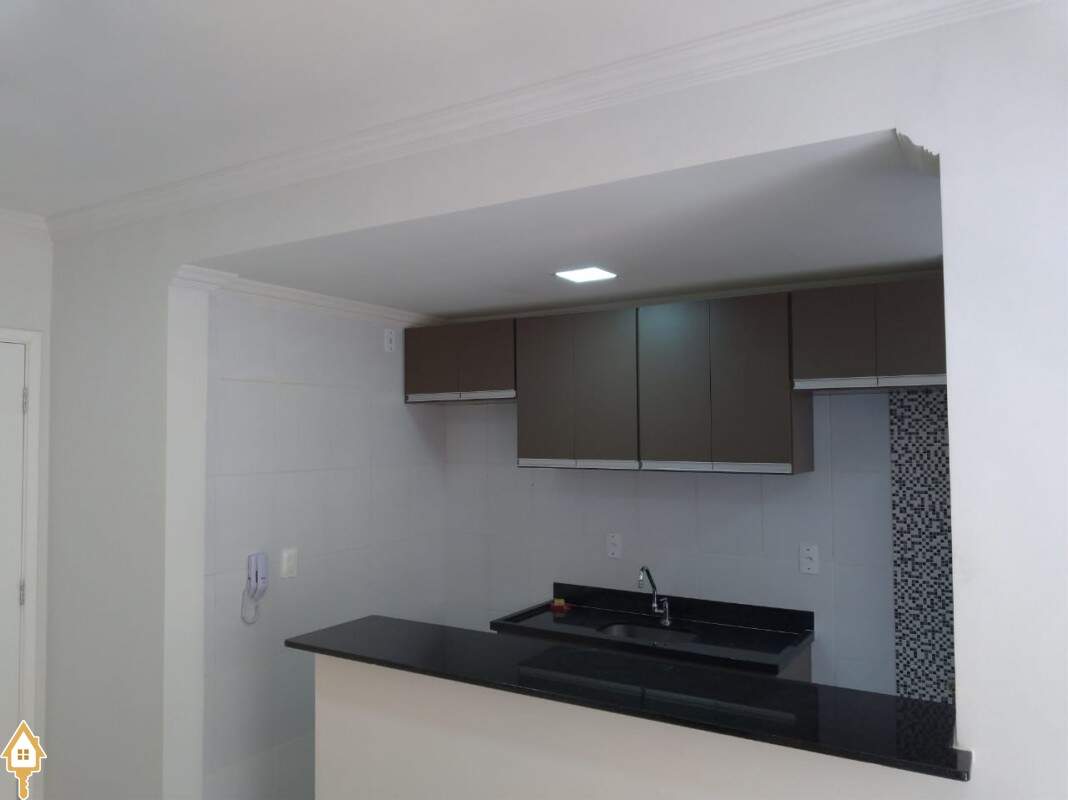 os quartos com armários, cozinha americana, kit Alencarina de porcelanato,