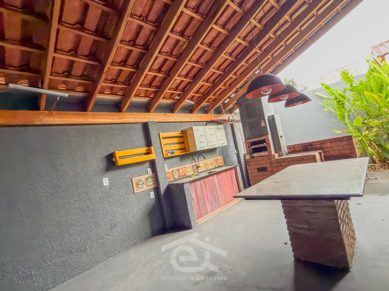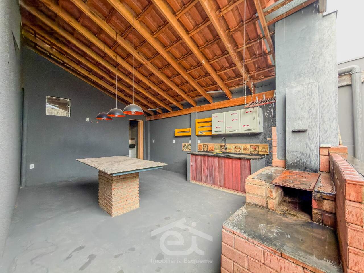 - Área gourmet com bancada, churrasqueira, banheiro com chuveiro e fogão a lenha