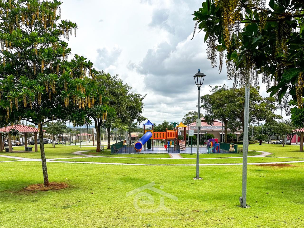 Condomínio com área de lazer completa, contando com campo de futebol, playground, salão de festas, espaço gourmet e portaria 24 horas.